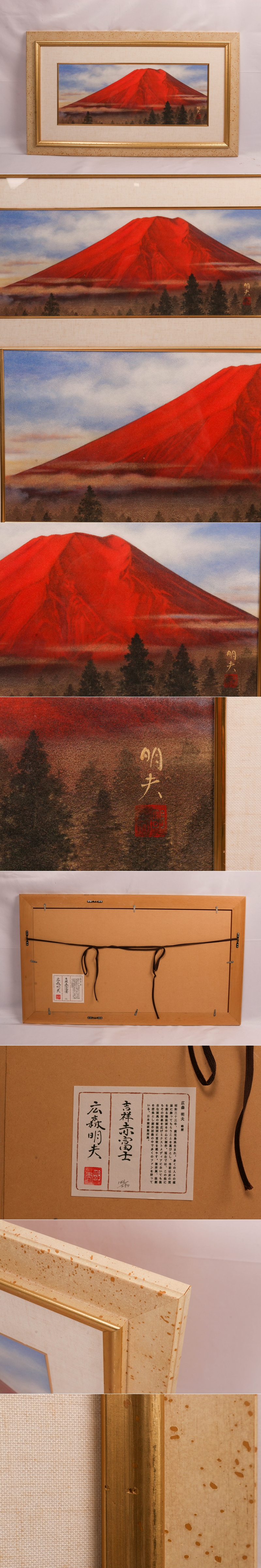 【SAG】広森明夫 『吉祥赤富士』岩彩ミクスドメディア 直筆サイン 落款 額装 共シール 本物保証 收藏
