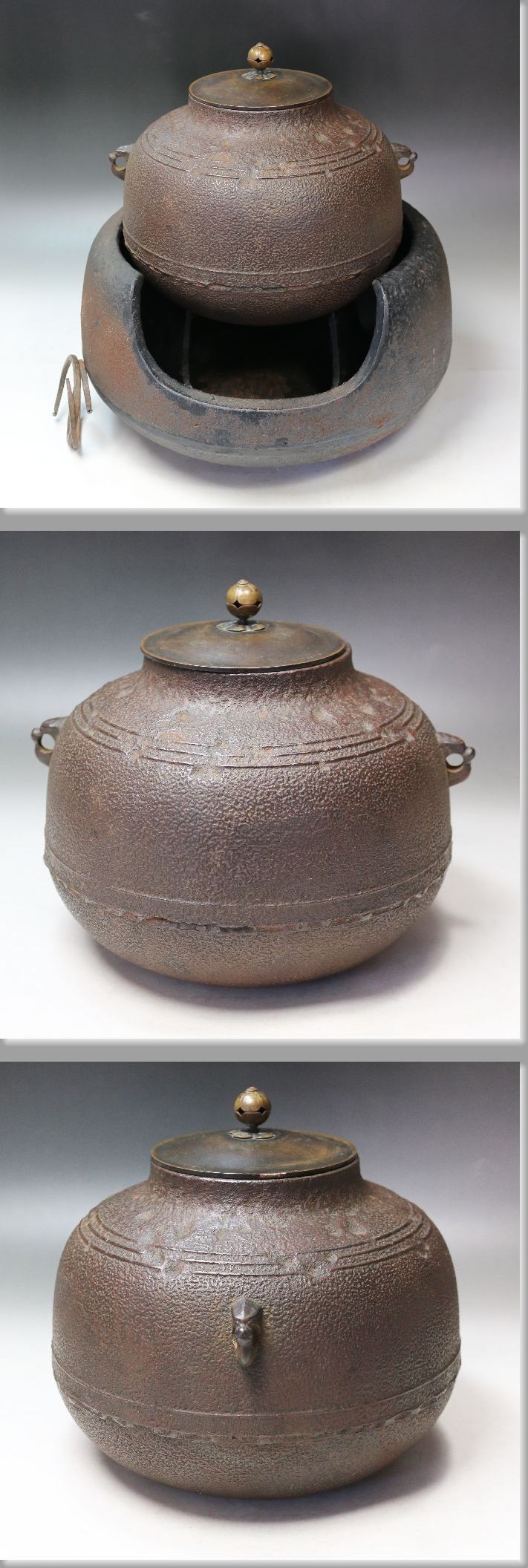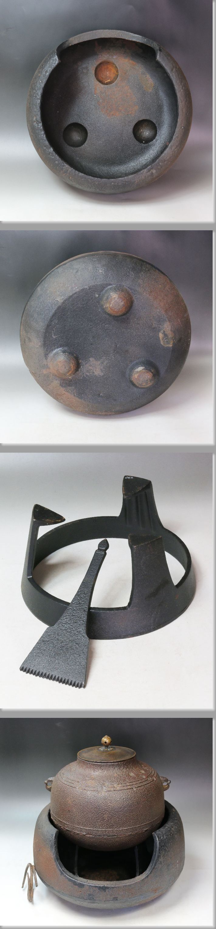 ■■ 茶道具 万代屋釜 鉄道安風炉 五徳付 ■■