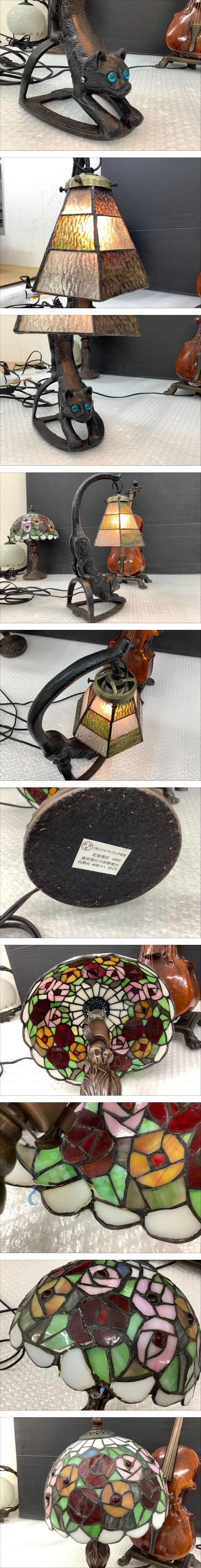 DB508【直接引き取り限定】通電動作確認済み4点まとめ/ステンドグラス テーブルランプ/猫/バイオリン/モザイクガラス/卓上ライト/t 收藏