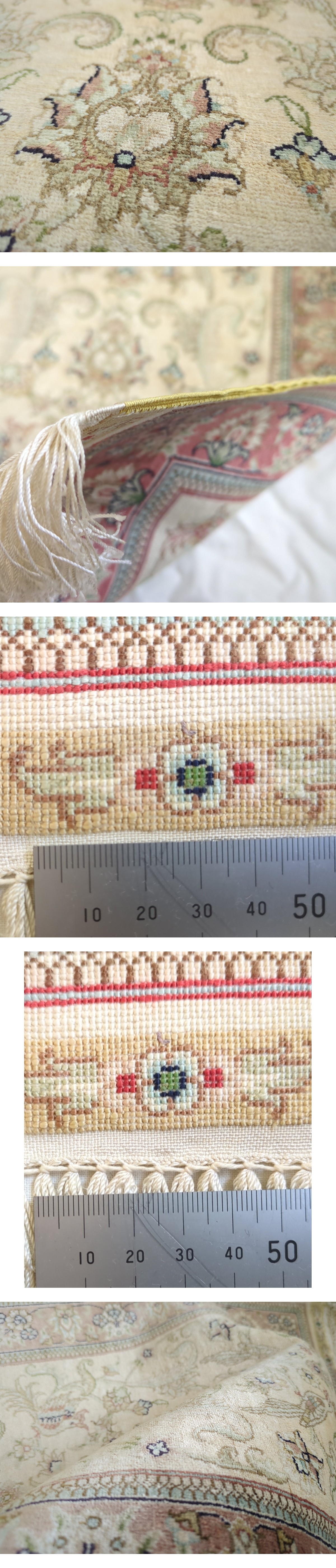 ペルシャ絨毯 100%シルク 極美品 本物 イスファハン クム じゅうたん ラグ カーペット 最高級 傑作 手織り ハンドメイド / ギャッベ キリム 收藏
