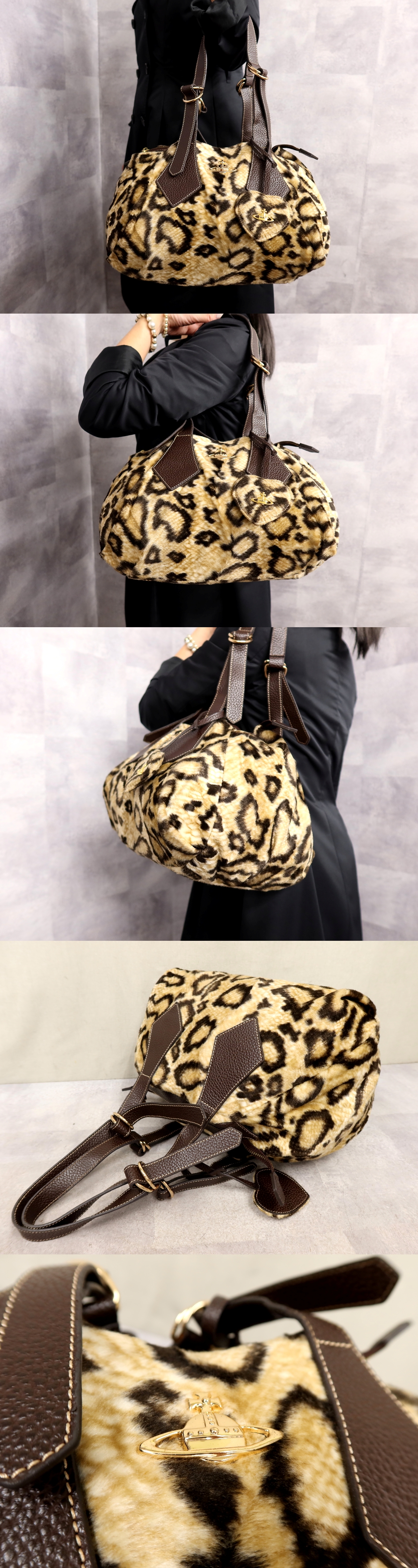 ●超美品●ヴィヴィアン・ウエストウッド●オーブ●レオパード柄●ファー カーフ レザー 本革●トート バッグ●ブラウン系●G金具●Js62719 收藏