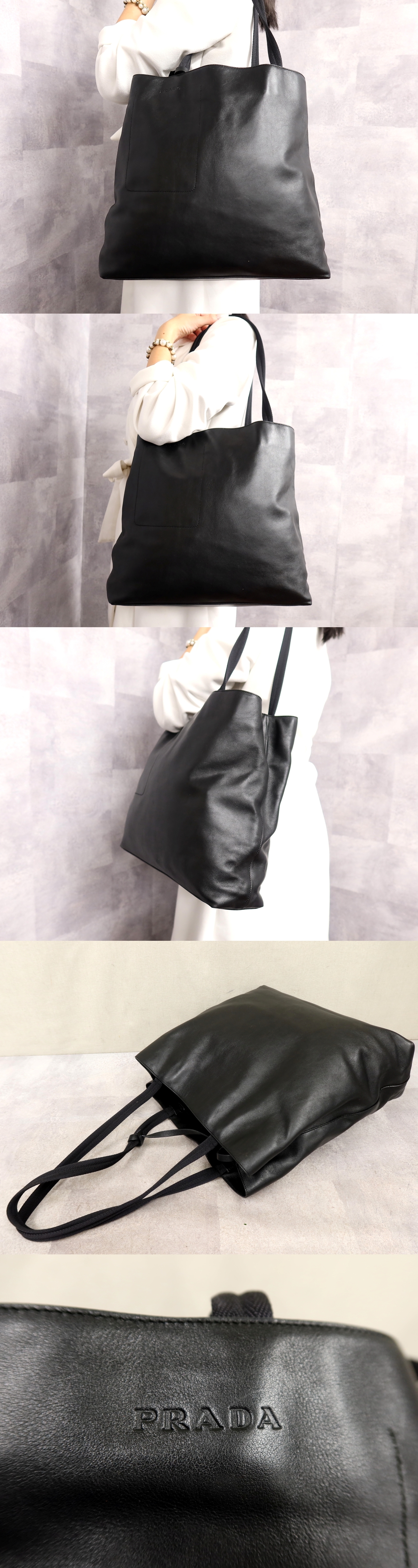 ●超美品●PRADA プラダ●ロゴ型押し●カーフ レザー 本革●トート バッグ●黒●シルバー金具●肩掛け●ヴィンテージ●A4 かばん●Js62772 收藏