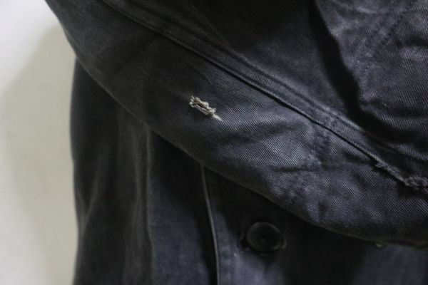 肩幅: 45cm 身幅: 56cm 着丈: 88cm 裄丈: 73cm 袖丈: 53cm イタリア軍フロッグコート 中古品 袖に穴 内側白い表示跡 ヴィンテージ独特の雰囲気あり
